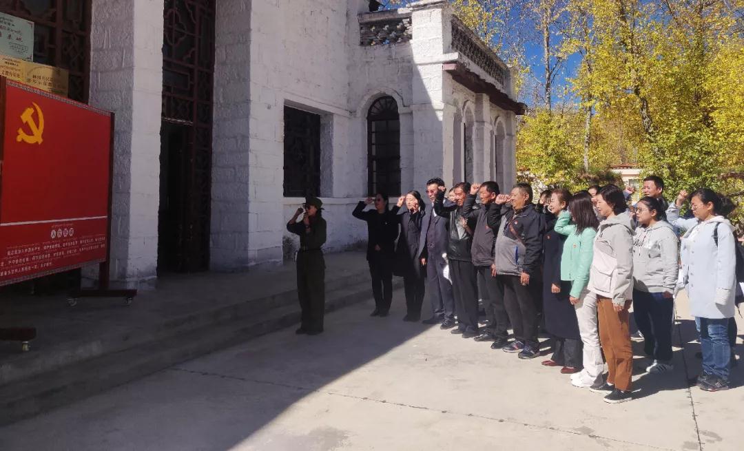 在林周农场礼堂前,全体党员面对党旗,重温了入党誓词。观看了知青和当地老百姓们共同修建虎头山水库的珍贵影视资料,参观了林周农场“筚路蓝缕,雪域垦歌”、“青春热血,艰苦奋斗”、“高原青春,岁月流金”等知青上山下乡剪影。